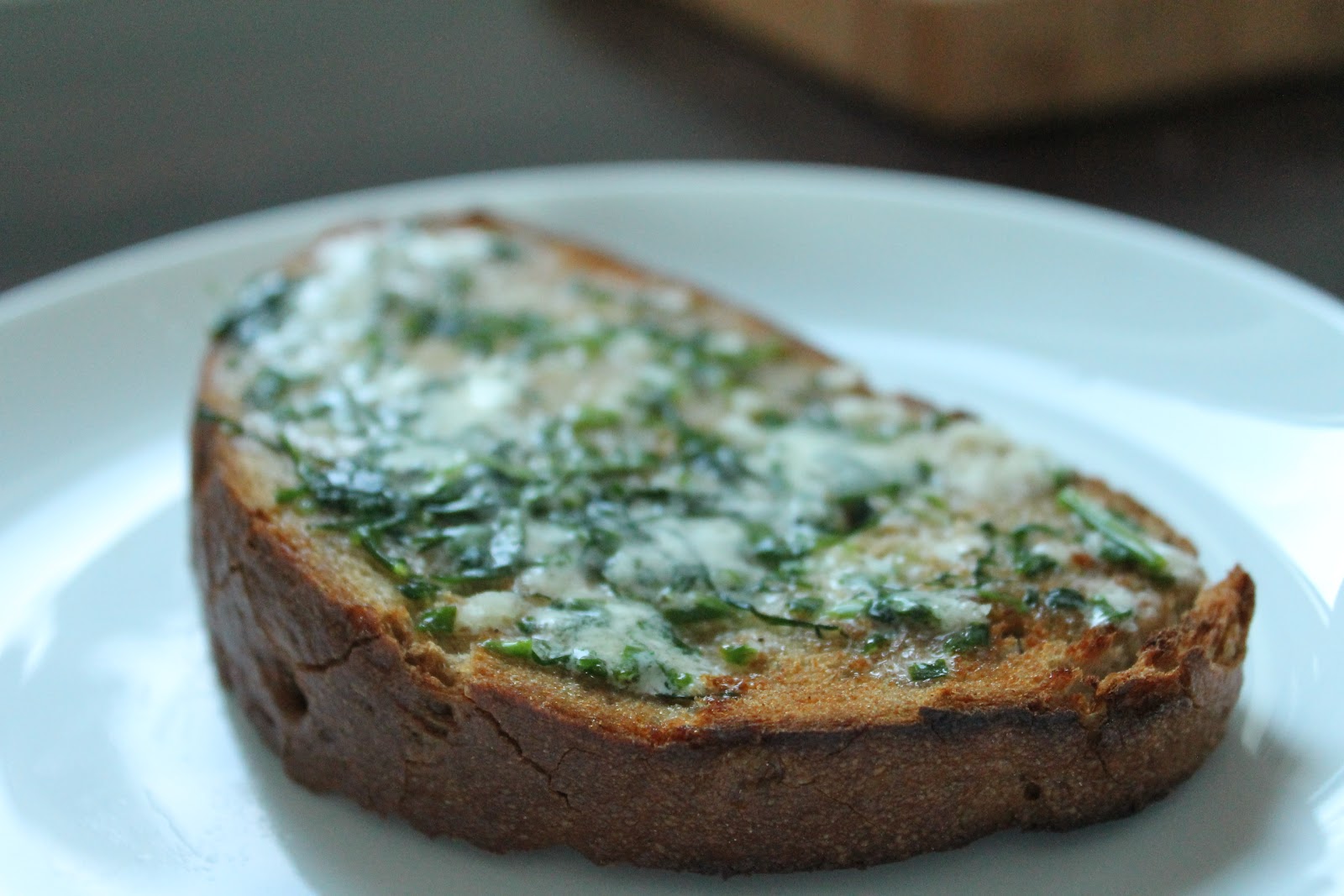 Mit veganer Kräuterbutter (Alsan, Salz, Schnittlauch, Petersilie, Knoblauch und Dill)